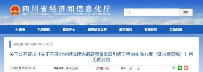 四川省具有電爐短流程煉鋼產業基礎好、水電等清潔能源豐富、廢鋼資源充足等優勢,為了先行先試開展示范,完善政策舉措,優化產業生態,加快推動電爐短流程煉鋼轉型升級,四川省特制定《關于開展電爐短流程煉鋼高質量發展引領工程的實施方案》。近日,四川省經信廳網站發布了關于公開征求《關于開展電爐短流程煉鋼高質量發展引領工程的實施方案(征求意見稿)》(以下簡稱《方案》)意見的公告。