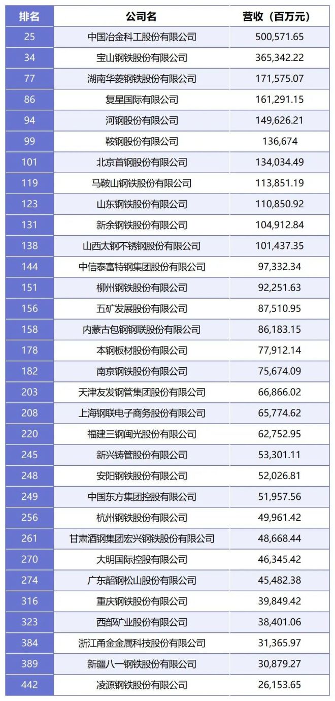 2022年《財富》中國500強揭曉!鋼鐵業(yè)這些企業(yè)上榜