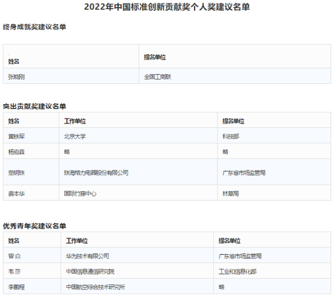 近日,國(guó)家市場(chǎng)監(jiān)督管理總局發(fā)布了《關(guān)于2022年中國(guó)標(biāo)準(zhǔn)創(chuàng)新貢獻(xiàn)獎(jiǎng)評(píng)審委員會(huì)建議名單的公示》(以下簡(jiǎn)稱“《公示》”),將通過評(píng)審的標(biāo)準(zhǔn)項(xiàng)目獎(jiǎng)、組織獎(jiǎng)和個(gè)人獎(jiǎng)建議名單及相關(guān)信息進(jìn)行公示。