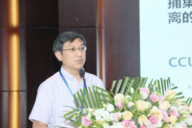 圖為杜濤作《鋼鐵廠尾氣二氧化碳捕集及其加氫催化制甲醇新技術》報告