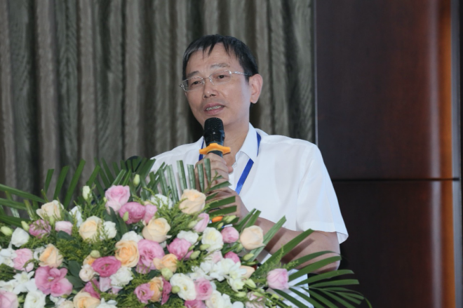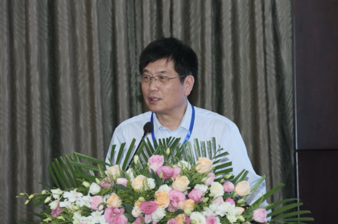 圖為楊憲禮作《政產學研協同創新,實現新鋼鐵低碳數字化發展》報告