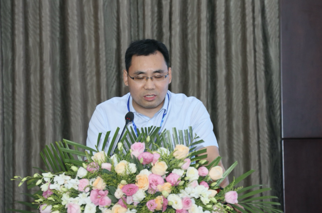 圖為李建立作《轉爐低碳高效煉鋼新技術研究進展》報告