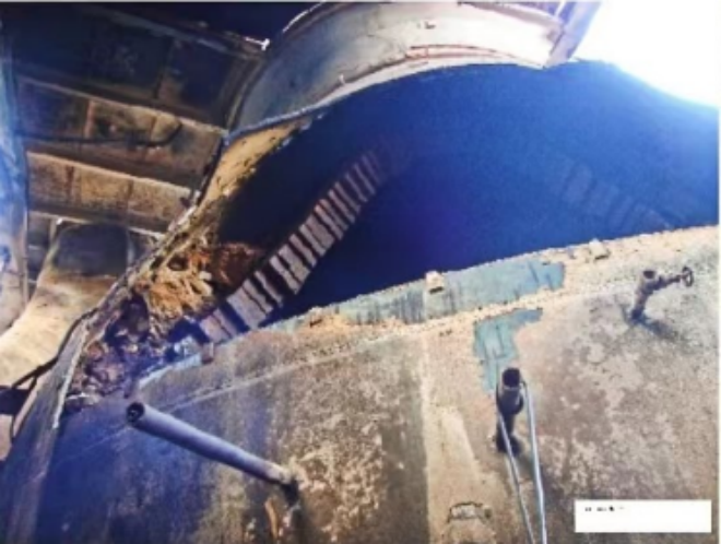 圖6為圖2對應,應力集中導致的熱風爐熱風出口坍塌