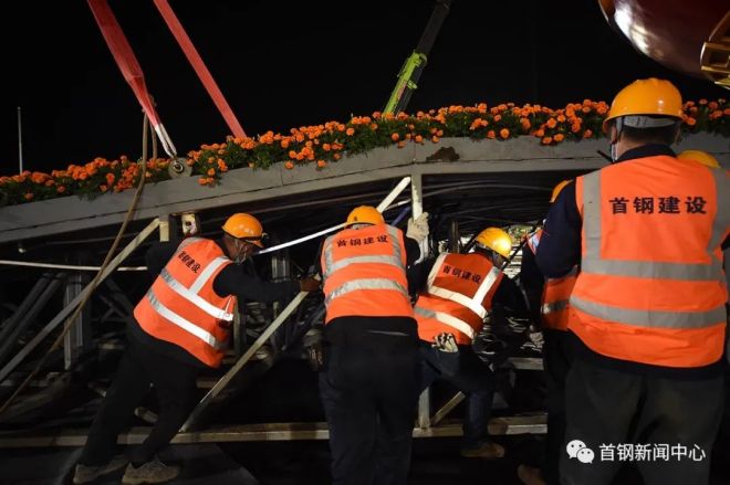 首鋼建設鋼構分公司自承接項目以來,精心組織,把每一個安裝環節都精確到分鐘,克服了雨季、大風、夜間連續施工等困難,始終傳承發揚首鋼精神,嚴控項目安全質量,全力推進施工進度,以最高標準、最嚴要求、最好狀態圓滿完成安裝任務。