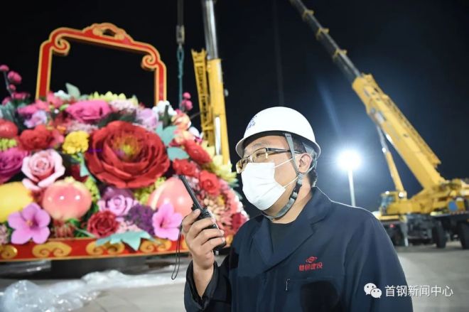 位于天安門廣場中心的“祝福祖國”巨型花果籃,由首鋼建設鋼構分公司制作安裝,記者在現場遇到了忙碌的首鋼建設鋼構分公司第一項目部項目經理王克文。