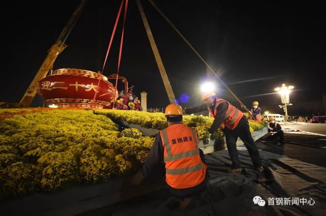 在花籃制造過程中,首鋼建設與北京市花木公司密切配合,確保項目的順利竣工,為偉大祖國73周年華誕與黨的二十大獻禮。