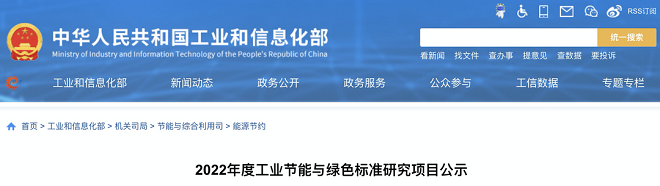 近日,工業和信息化部網站發布了《2022年度工業節能與綠色標準研究項目公示》(以下簡稱《公示》)。