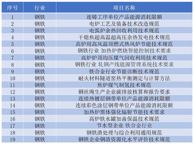 2022年度工業節能與綠色標準研究項目公示!19個鋼鐵項目在其中