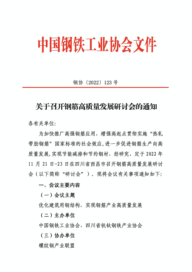 關于召開鋼筋高質量發展研討會的通知