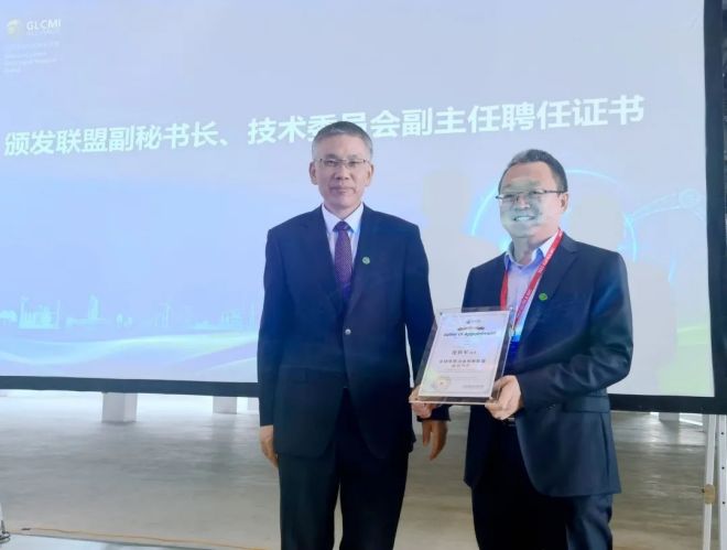會上,冶金工業規劃研究院院長范鐵軍受聘為全球低碳冶金創新聯盟副秘書長。中國寶武鋼鐵集團有限公司副總經理、全球低碳冶金創新聯盟秘書長侯安貴為范鐵軍頒發聘書。