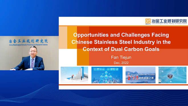 冶金工業規劃研究院范鐵軍院長受邀參會,并作主題報告《“雙碳”背景下中國不銹鋼行業面臨的機遇與挑戰》(Opportunities and Challenges Facing Chinese Stainless Steel Industry in the Context of Dual Carbon Goals)。