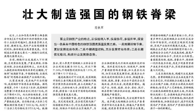 近日,工業和信息化部等三部委聯合印發《關于鞏固回升向好趨勢加力振作工業經濟的通知》,指出要堅持立足當前、兼顧長遠,用好產業結構調整有利時機,推動制造業高質量發展。作為制造業的重要元素之一,鋼鐵行業的發展情況值得關注。