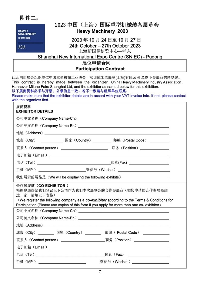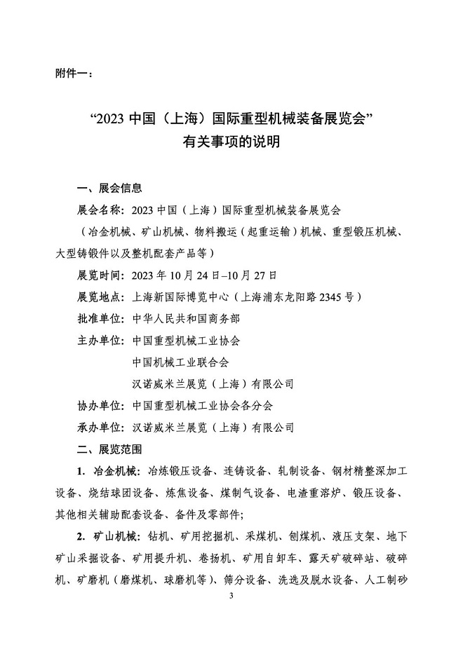 關于舉辦“2023中國(上海)國際重型機械裝備展覽會”的通知