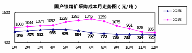 2022年1—12月,煉焦煤累計采購成本同比增長24.91%;冶金焦同比增長2.19%;國產鐵精礦同比下降26.06%,進口粉礦同比下降24.16%;廢鋼同比下降4.67%。