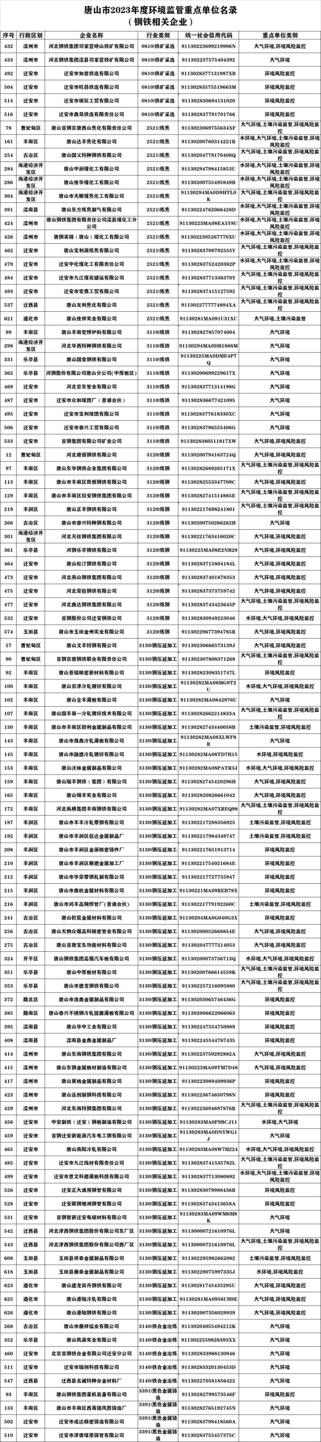 3月30日,唐山市生態環境局網站發布了關于印發《唐山市2023年度環境監管重點單位名錄》的通知(以下簡稱《通知》)。