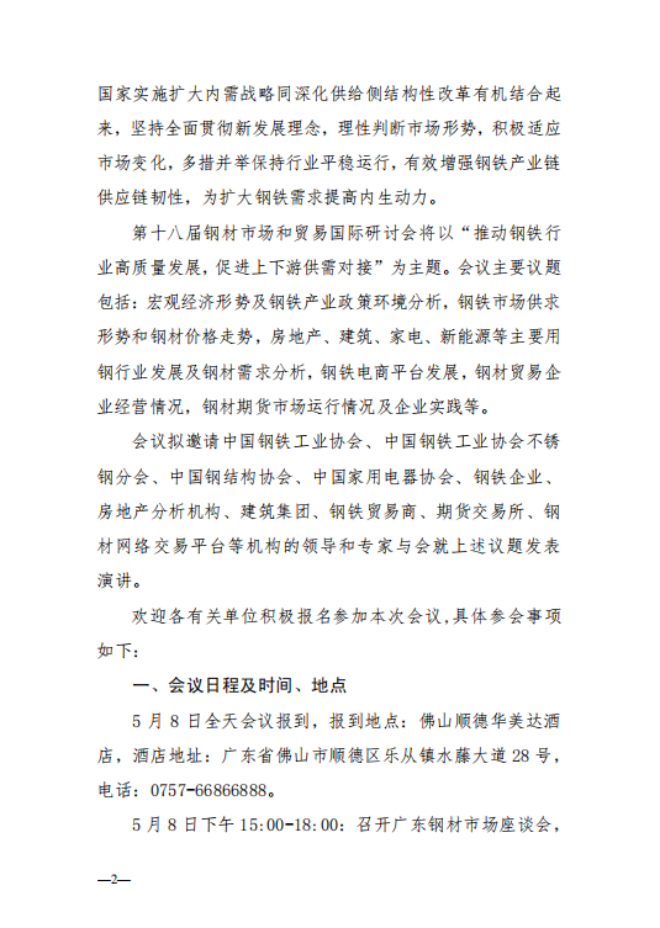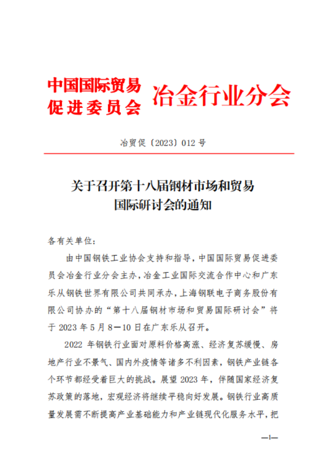 關(guān)于召開第十八屆鋼材市場和貿(mào)易國際研討會的通知