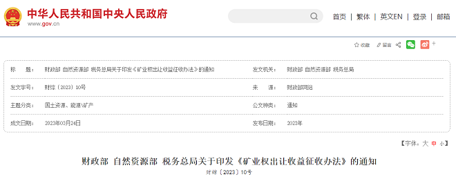 近日,財政部、自然資源部、稅務(wù)總局修訂印發(fā)《礦業(yè)權(quán)出讓收益征收辦法》(以下簡稱《辦法》)。