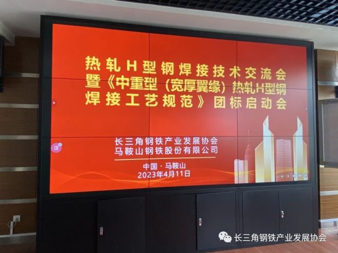 2023年4月11日下午,長(zhǎng)三角鋼鐵產(chǎn)業(yè)發(fā)展協(xié)會(huì)主辦的“熱軋H型鋼焊接技術(shù)交流會(huì)暨《中重型(寬厚翼緣)熱軋H型鋼焊接工藝規(guī)范》團(tuán)標(biāo)啟動(dòng)會(huì)在馬鋼股份有限公司會(huì)議室圓滿召開(kāi)。