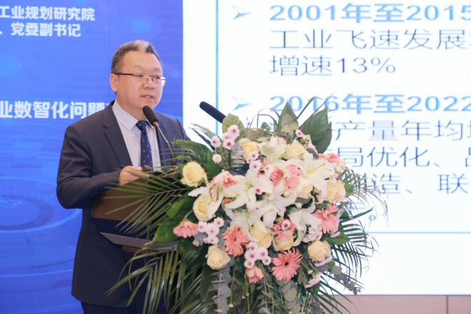 張志平介紹了江蘇省近年來數智化轉型發展的成效及目標。他介紹,近年來,江蘇省堅持把數字經濟作為轉型發展的關鍵增量,加快建設數字融合第一省,推動全省工業經濟的高質量發展。2022年,全省數字經濟規模超過5萬億元,數字經濟核心產業增加值占GDP比重達到11%;制造業高質量發展的指數、智能制造發展指數、兩化融合發展水平均居全國第一。他表示,2023年是全面推進中國式現代化江蘇實踐的關鍵之年,也是實施制造業“智改數轉”三年行動計劃的攻堅之年,江蘇省全年要啟動實施2萬家規上工業企業“智改數轉”工作等,為推動制造業高質量發展提供有力支撐。