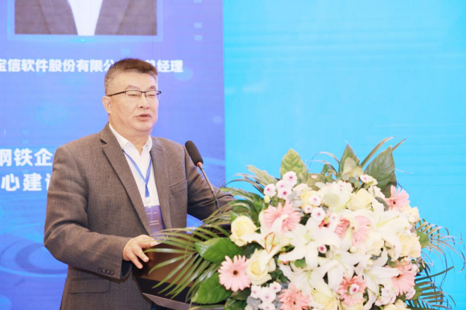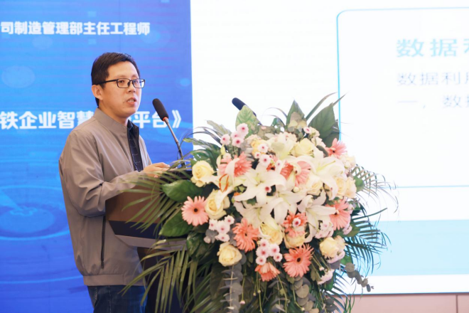 圖為梁越永做《數據賦能鋼鐵企業數字化轉型——大數據中心建設與應用創新》主題報告