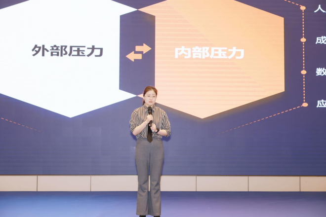 圖為山東睿航環境工程有限公司總經理陳海峰做《商業模式創新讓節能減排與數字化推進更高效》主題報告