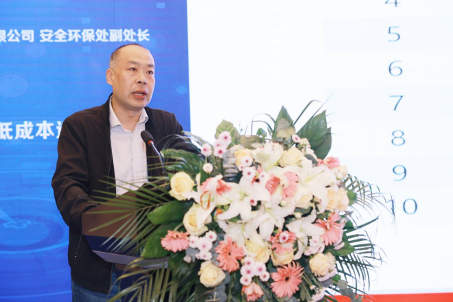 圖為劉志勇做《燒結脫硫脫硝低成本運行實踐》主題報告