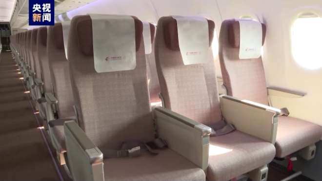 另外,飛機公務艙、經濟艙均選用完全自主研發的新一代國產客艙座椅。其中,8個公務艙座椅為全鋁合金框架結構,采用搖籃式設計,后靠可達120度、前后座椅間距超過1米;156個經濟艙設計采用3-3布局,中間座位比兩邊座位寬1.5cm;加上C919客艙擁有2.25米的過道高度,旅客能感受到舒適的頂部和前方視覺空間。