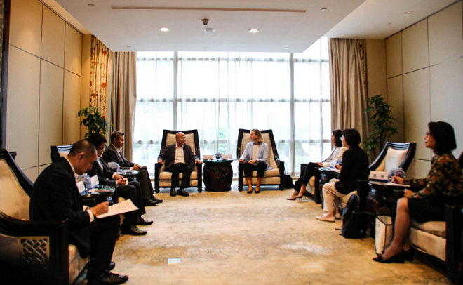 2023年6月13日,中國鋼鐵工業協會黨委書記、執行會長何文波在上海會見了FMG集團首席執行官菲奧娜?希克(Fiona Hick)一行。
