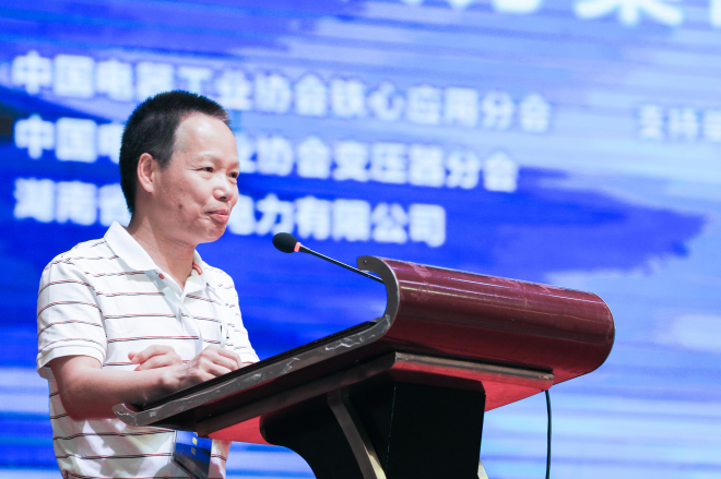 論壇會(huì)在湖南省衡陽市舉行。中國(guó)電器工業(yè)協(xié)會(huì)副會(huì)長(zhǎng)郭振巖,中國(guó)電器工業(yè)協(xié)會(huì)變壓器分會(huì)理事長(zhǎng)劉杰、鐵心應(yīng)用分會(huì)理事長(zhǎng)蔡子祥,中國(guó)電力科學(xué)研究院院長(zhǎng)高克利,中國(guó)機(jī)械工業(yè)聯(lián)合會(huì)處長(zhǎng)李曉佳、中鋼協(xié)冶金科技部專家陳卓、湖南國(guó)創(chuàng)電力有限公司總經(jīng)理范利明等有關(guān)專家、學(xué)者以及硅鋼材料、鐵心制造、變壓器制造、高校等相關(guān)配套企業(yè)代表約160人參加,鐵心應(yīng)用分會(huì)常務(wù)副秘書長(zhǎng)肖海航主持了會(huì)議。