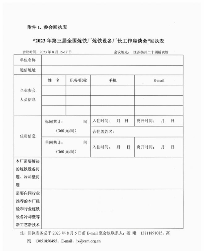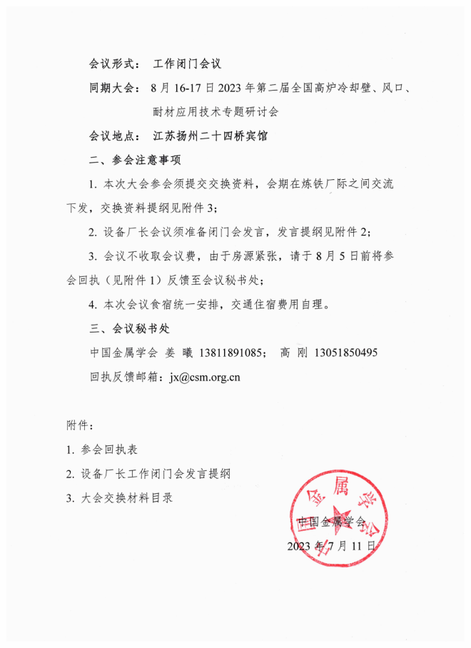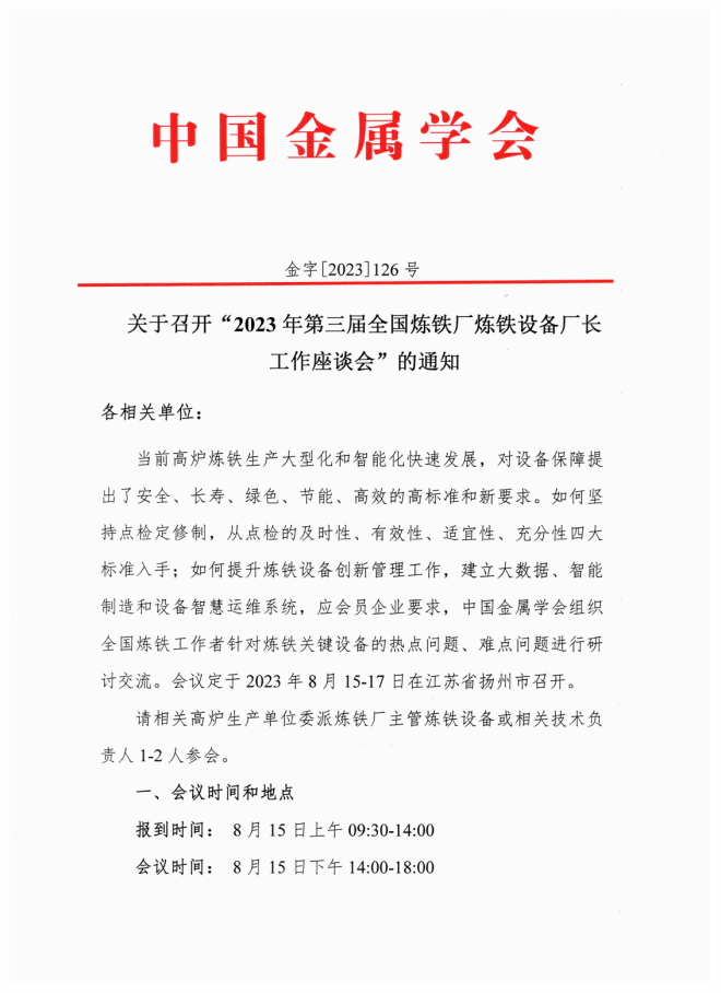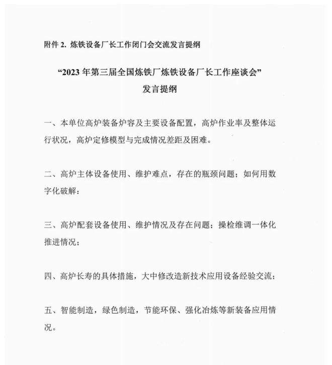 關于召開“2023年第三屆全國煉鐵廠煉鐵設備廠長工作座談會”的通知