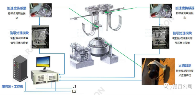 首先是智能煉鋼平臺,鐳目公司開發了一整套完整的智慧煉鋼系統,包含了主廢料管控系統、智能廢鋼判級系統、一鍵脫硫(智能扒渣等)、轉爐智能煉鋼(自動出鋼等)、智能LF精煉、煉鋼生產準時化系統,以及國內首套氧槍振動噴濺檢測系統。