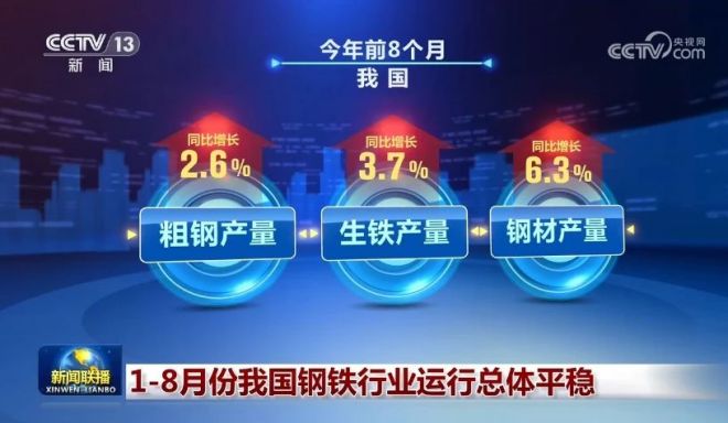 中國鋼鐵工業協會發布的數據顯示:1-8月份我國鋼鐵行業保持平穩增長態勢,高端化、智能化、綠色化水平穩步提升。