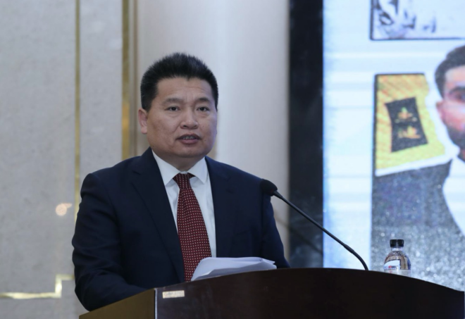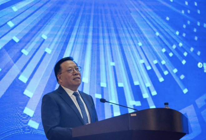 圖為中國搜索信息科技股份有限公司黨委書記、董事長、總裁李勁松作主題演講。