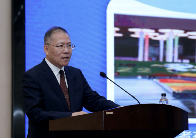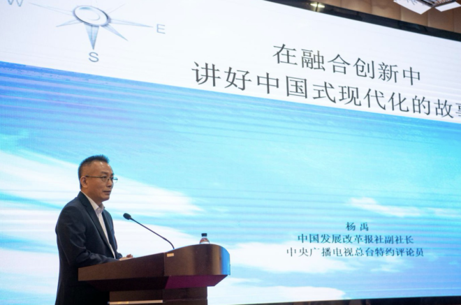 圖為中國發展改革報社副社長、中央廣播電視總臺特約評論員楊禹作主旨演講。