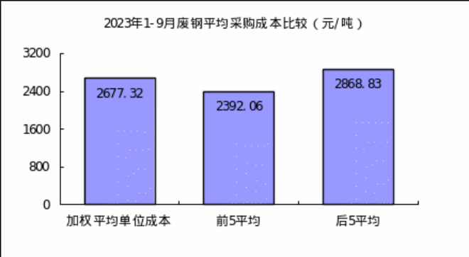 2023年9月,除廢鋼外,其他品種采購成本環比上升。