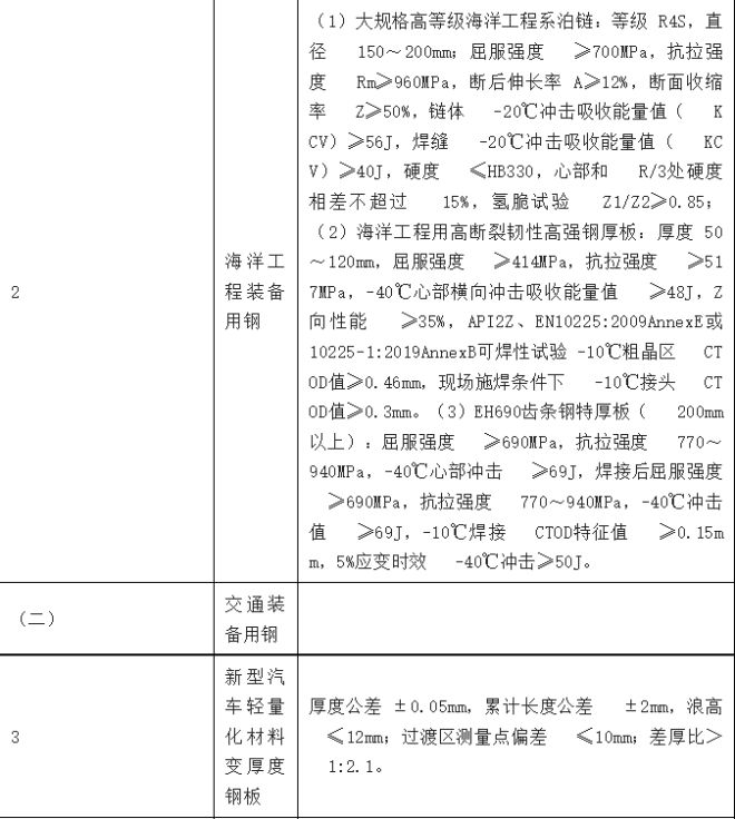 一批先進(jìn)鋼鐵材料入選《重點(diǎn)新材料首批次應(yīng)用示范指導(dǎo)目錄(2024年版)》(征求意見稿)
