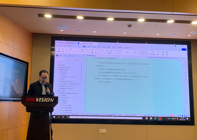 華為技術公司標準部副總、此團標編委代表譚斌,總結了標準自立項以來的各項步驟,對參加標準編寫的各位專家一年來的辛苦付出表達感謝。
