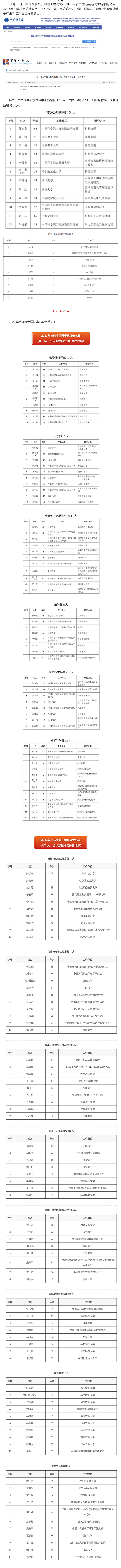 中國科學院、中國工程院2023年增選當選院士名單公布