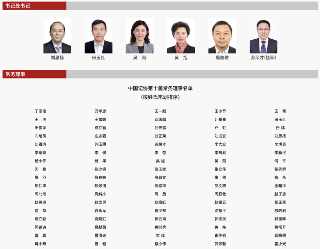 據(jù)中國(guó)記協(xié)官網(wǎng),目前,中國(guó)記協(xié)設(shè)置主席、黨組書記各一名,副主席13名,書記處書記6名,常務(wù)理事85名。