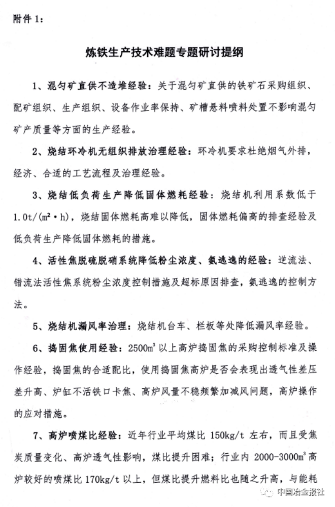 附件1:煉鐵生產(chǎn)技術(shù)難題專(zhuān)題研討提綱