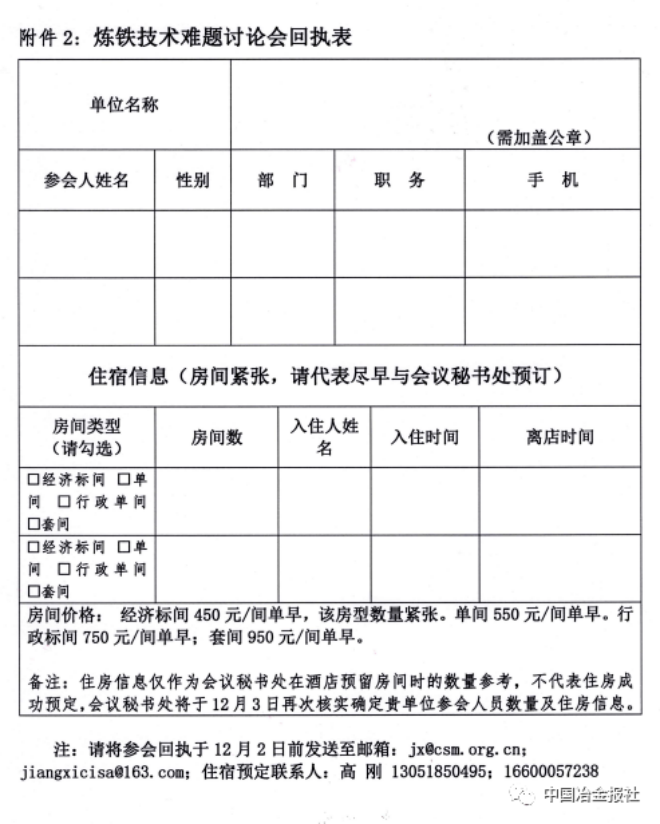 附件2:煉鐵技術(shù)難題討論會(huì)回執(zhí)表
