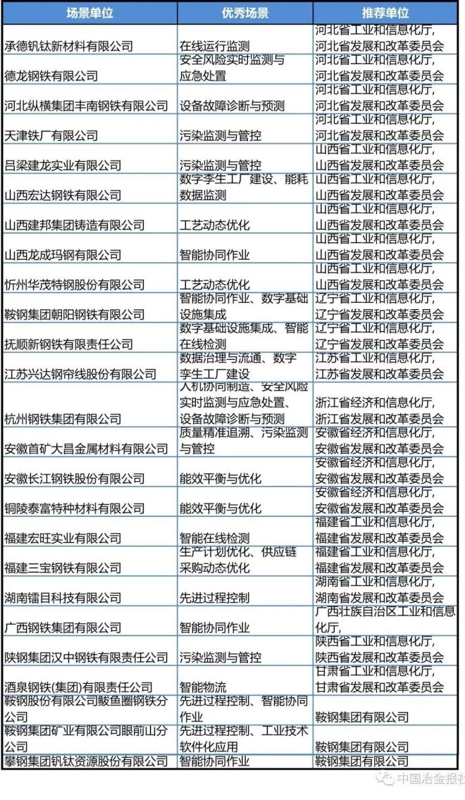 鋼鐵行業(yè)入選2023年度智能制造優(yōu)秀場景名單: