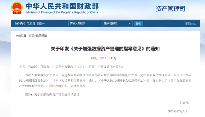 為深入貫徹落實黨中央決策部署,規范和加強數據資產管理,更好推動數字經濟發展,近日,財政部制定印發了《關于加強數據資產管理的指導意見》(以下簡稱《指導意見》)。