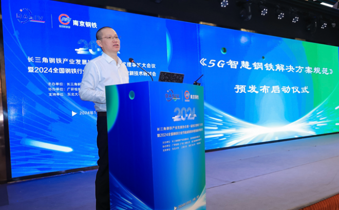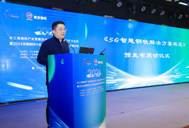 2024年1月9日上午,在長三角鋼鐵產業發展協會一屆四次理事擴大會議上,協會團體標準《5G智慧鋼鐵解決方案規范》在南京舉行了預發布儀式。
