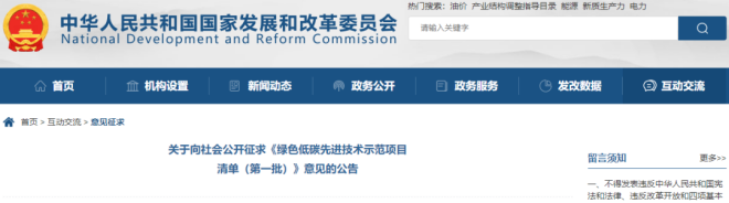 3月19日,國家發展改革委發布向社會公開征求《綠色低碳先進技術示范項目清單(第一批)》意見的公告。