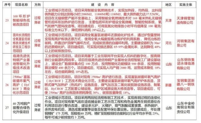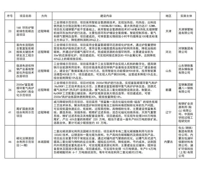 公告顯示,第一批綠色低碳先進技術示范項目清單,共納入47個項目。涉及鋼鐵企業具體情況如下: