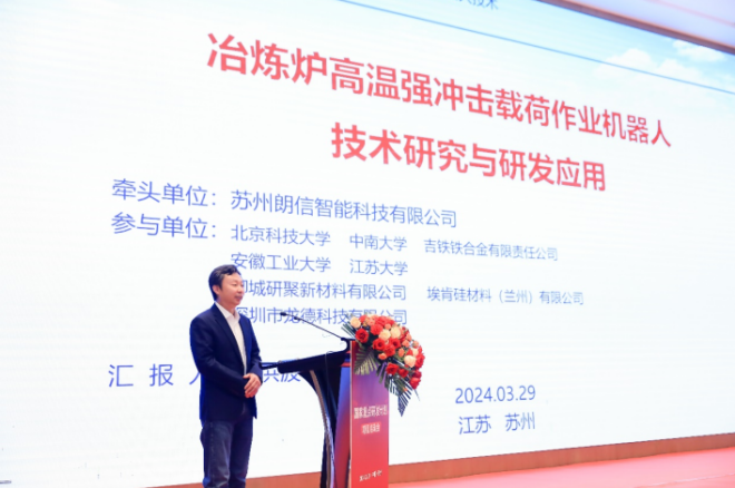 3月29日,由蘇州朗信智能科技有限公司(以下簡稱朗信科技)作為牽頭單位的國家重點研發計劃智能機器人重點專項——“冶煉爐高溫強沖擊載荷作業機器人技術研究與研發應用”項目啟動會在蘇州召開。這是工信部、地方政府、優秀企業、重點高校、行業協會攜手落實中央部署、大力培育和發展新質生產力的重要行動。