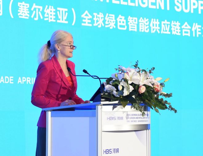 耶萊娜·貝戈維奇在致辭中代表塞爾維亞科技部向與會(huì)嘉賓致以問(wèn)候,并預(yù)祝大會(huì)取得成功。她指出,這次大會(huì)是鋼鐵行業(yè)在推廣先進(jìn)的綠色、智能解決方案,推動(dòng)智能供應(yīng)鏈、綠色轉(zhuǎn)型方面邁出的一大步,高度契合共建“一帶一路”倡議。以“相聚塞爾維亞,攜手構(gòu)建綠色智能供應(yīng)鏈”為主題,體現(xiàn)了科學(xué)界和工業(yè)界對(duì)研發(fā)創(chuàng)新解決方案和最佳實(shí)踐的渴望,使行業(yè)更加高效為實(shí)現(xiàn)可持續(xù)發(fā)展目標(biāo)作出貢獻(xiàn)。生產(chǎn)綠色的鋼鐵,可以減少碳足跡和對(duì)環(huán)境的負(fù)面影響。河鋼認(rèn)識(shí)到負(fù)責(zé)任的生產(chǎn)并努力通過(guò)應(yīng)用科學(xué)、知識(shí)創(chuàng)新等方式,使其生產(chǎn)過(guò)程更加綠色是極其重要的。通過(guò)智能技術(shù)優(yōu)化生產(chǎn)流程,依托綠色解決方案進(jìn)一步推動(dòng)行業(yè)的進(jìn)步。希望大家加強(qiáng)合作、共同努力,實(shí)現(xiàn)未來(lái)可持續(xù)發(fā)展的目標(biāo)。