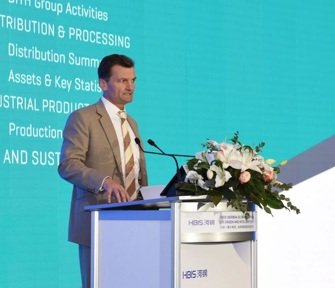 于勇在致辭中代表河鋼感謝全球戰(zhàn)略合作伙伴長(zhǎng)期以來(lái)對(duì)河鋼的高度信任和支持,向出席大會(huì)的嘉賓表示熱烈的歡迎。他指出,當(dāng)前,新科技革命正在加速全球供應(yīng)鏈的重構(gòu),綠色、智能已經(jīng)成為全球產(chǎn)業(yè)發(fā)展的主旋律。今天,我們緊緊圍繞綠色智能在塞爾維亞深化供應(yīng)鏈合作,這是以科技創(chuàng)新推動(dòng)產(chǎn)業(yè)融合發(fā)展的生動(dòng)實(shí)踐,對(duì)加快全球綠色智能供應(yīng)鏈重構(gòu),推動(dòng)全球產(chǎn)業(yè)綠色轉(zhuǎn)型和智能化升級(jí)具有積極的重大作用。全球化最大限度地讓不同的國(guó)家、地區(qū)、企業(yè)能擁有最好的資源和合作方式。河鋼對(duì)世界范圍內(nèi)的合作充滿了信心,全球以綠色、智能、低碳為契機(jī)的供應(yīng)鏈重構(gòu),給我們各方面帶來(lái)了新的合作機(jī)遇。河鋼愿意與全球合作伙伴一道在歐洲、在塞爾維亞,探索更好的合作方式,發(fā)揮更強(qiáng)大的戰(zhàn)略協(xié)同價(jià)值,為推動(dòng)全球產(chǎn)業(yè)更加綠色、更加低碳、更加智能貢獻(xiàn)智慧和力量。