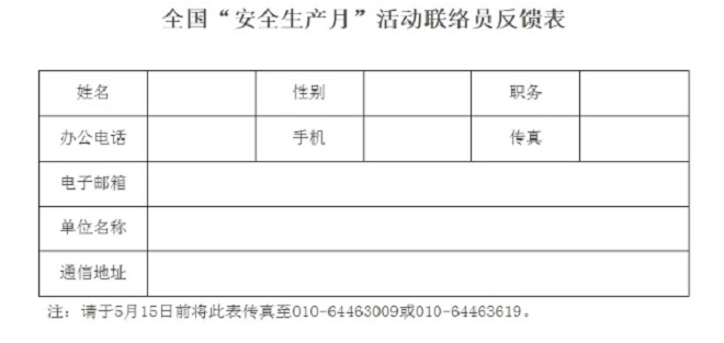 附件:全國“安全生產月”活動聯絡員反饋表